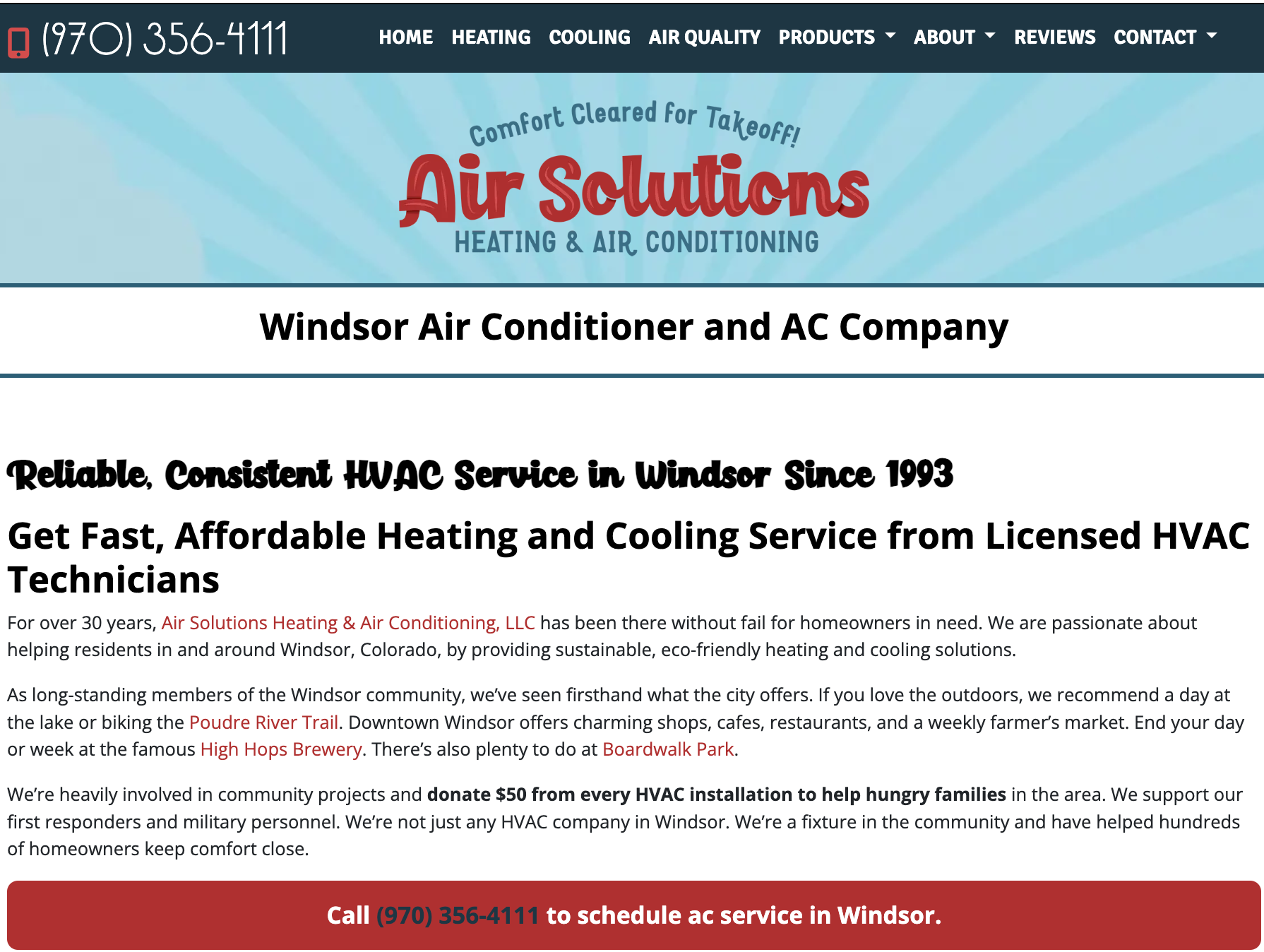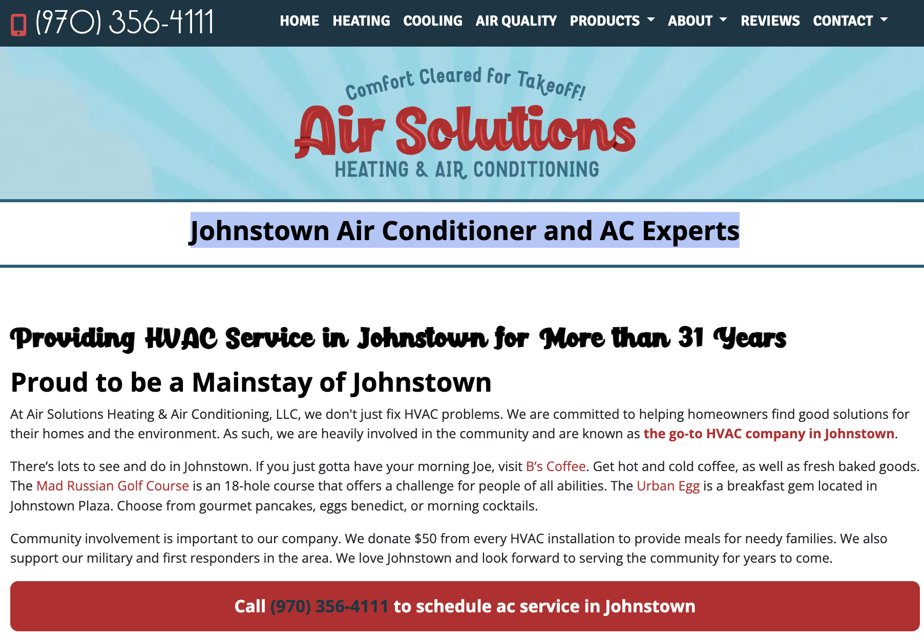 Check out these samples of the location pages I wrote for Air Solutions Heating & Air Conditioning!: